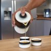 Sada pro degustování čaje. Perfektní pro milovníky čaje, kteří hledají rafinovaný zážitek z jeho pití. Čajová konvice má elegantní design s přechodem bílé a černé. Obsahuje dřevěný pásek pro lepší možnost uchopení a estetický vzhled. Konvička je dodávána s odnímatelným čajovým infuzérem, který usnadňuje vaření sypaných čajů a následné čištění. Šálky mají minimalistický design a skvěle doplňují konvici. K sadě je dodáváno cestovní pouzdro.