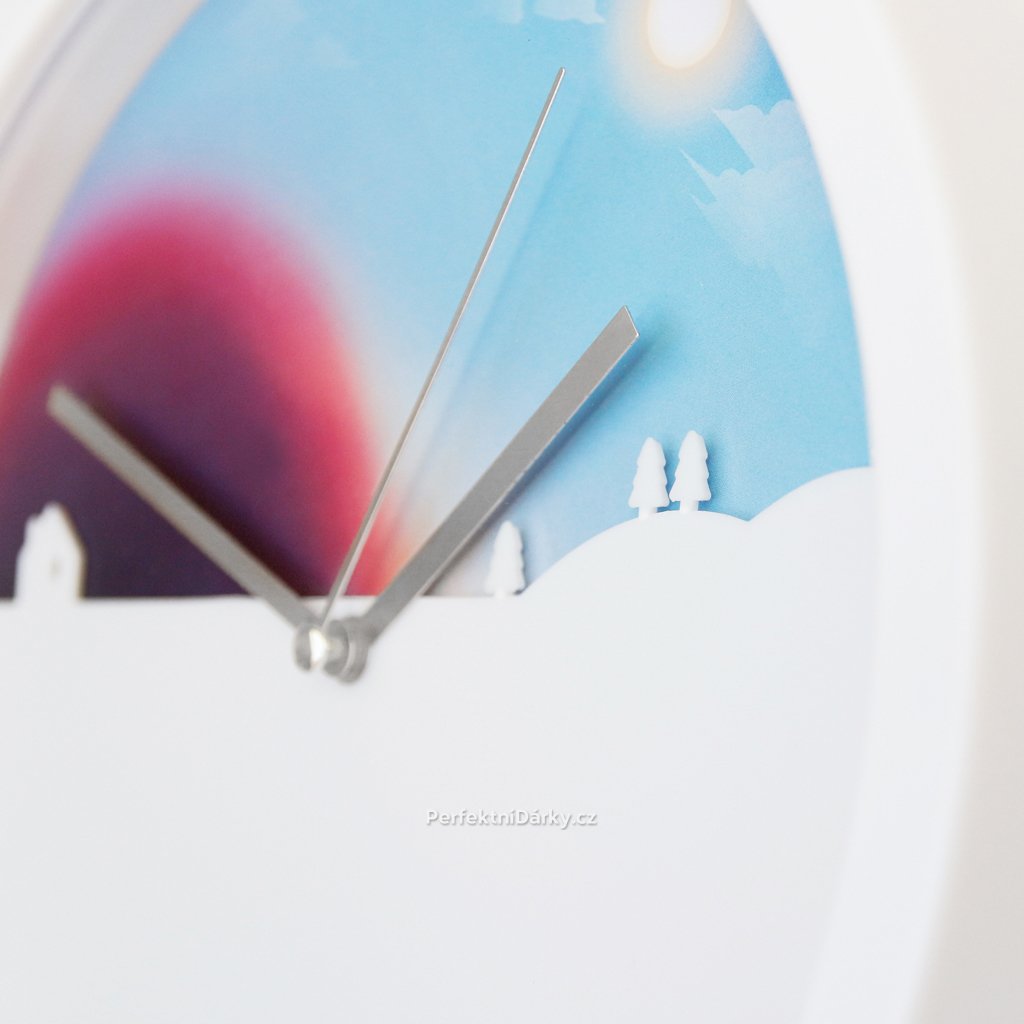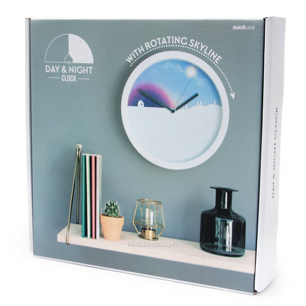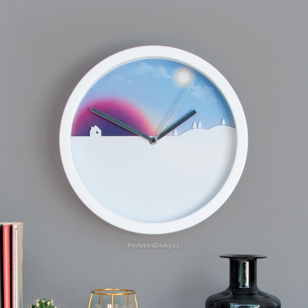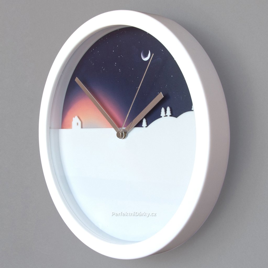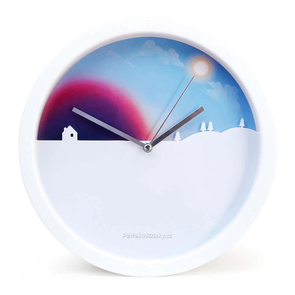 Originální hodiny. Pohyblivé pozadí je ilustrované jako denní a noční obloha.