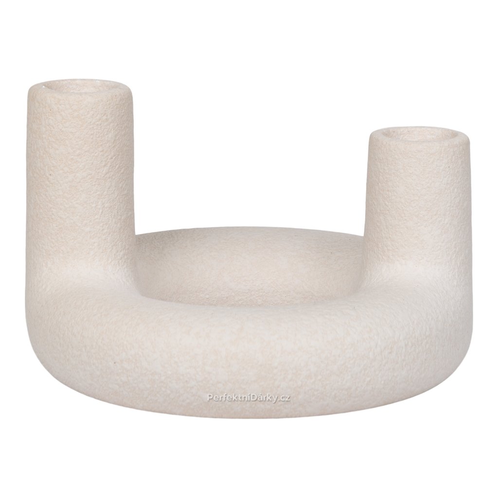 Keramický svícen Loro – béžový | ø13×8,5 cm