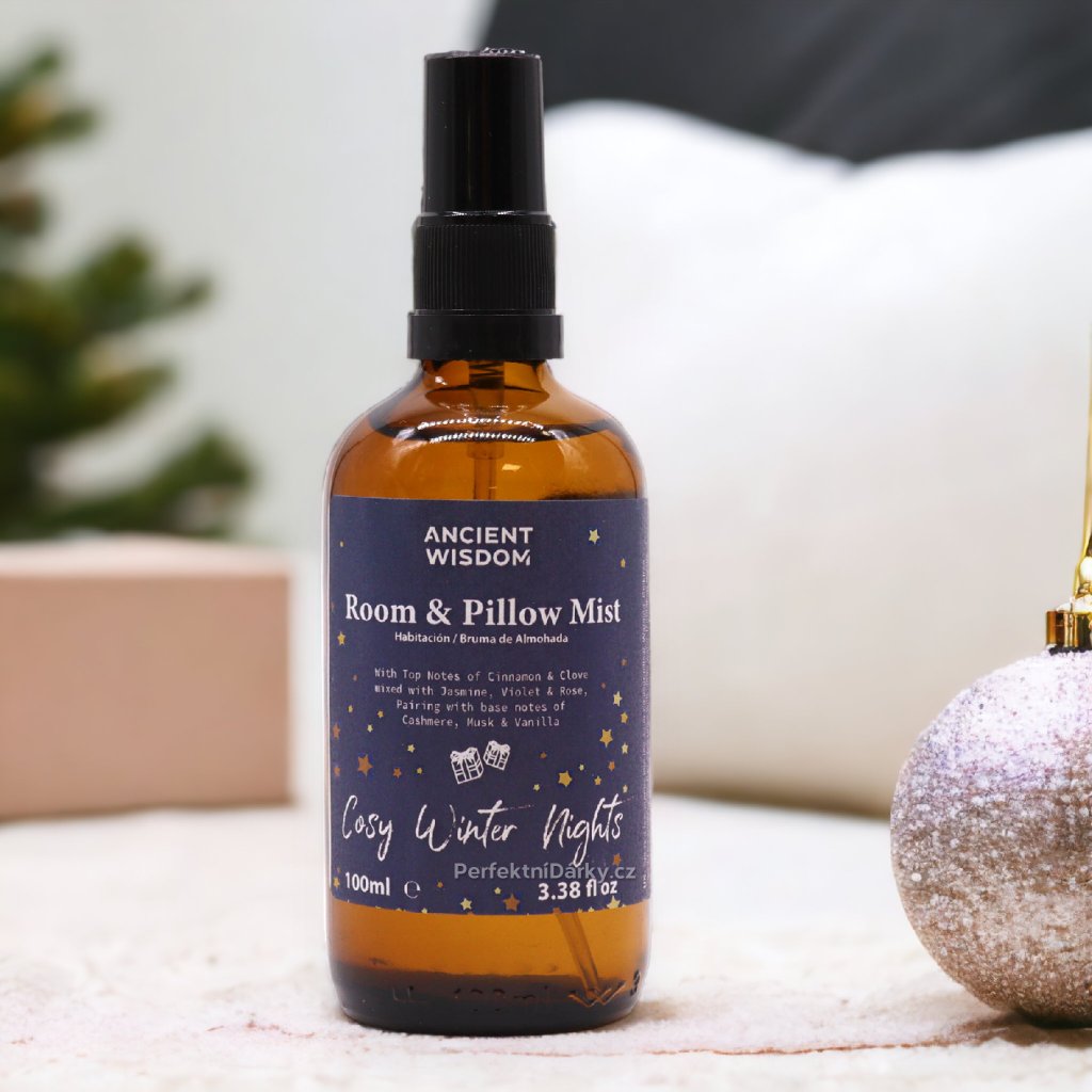 Pokojový a polštářový sprej zachycuje útulnou náruč zimních večerů. S horními tóny skořice a hřebíčku, které naplní vzduch uklidňující, kořeněnou vůní, evokující esenci tepla. Harmonická směs jasmínu, fialky a růže vnáší do vůně jemný dotek květinové elegance a jemnosti. Základní tóny kašmíru, pižma a vanilky nabízí sametovou, uklidňující hloubku, která přetrvává a vytváří příjemnou atmosféru.