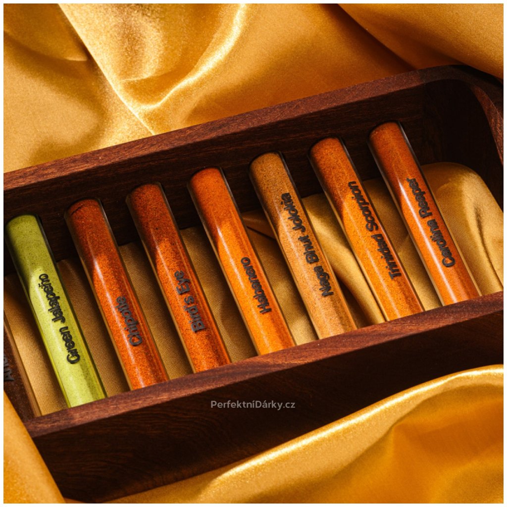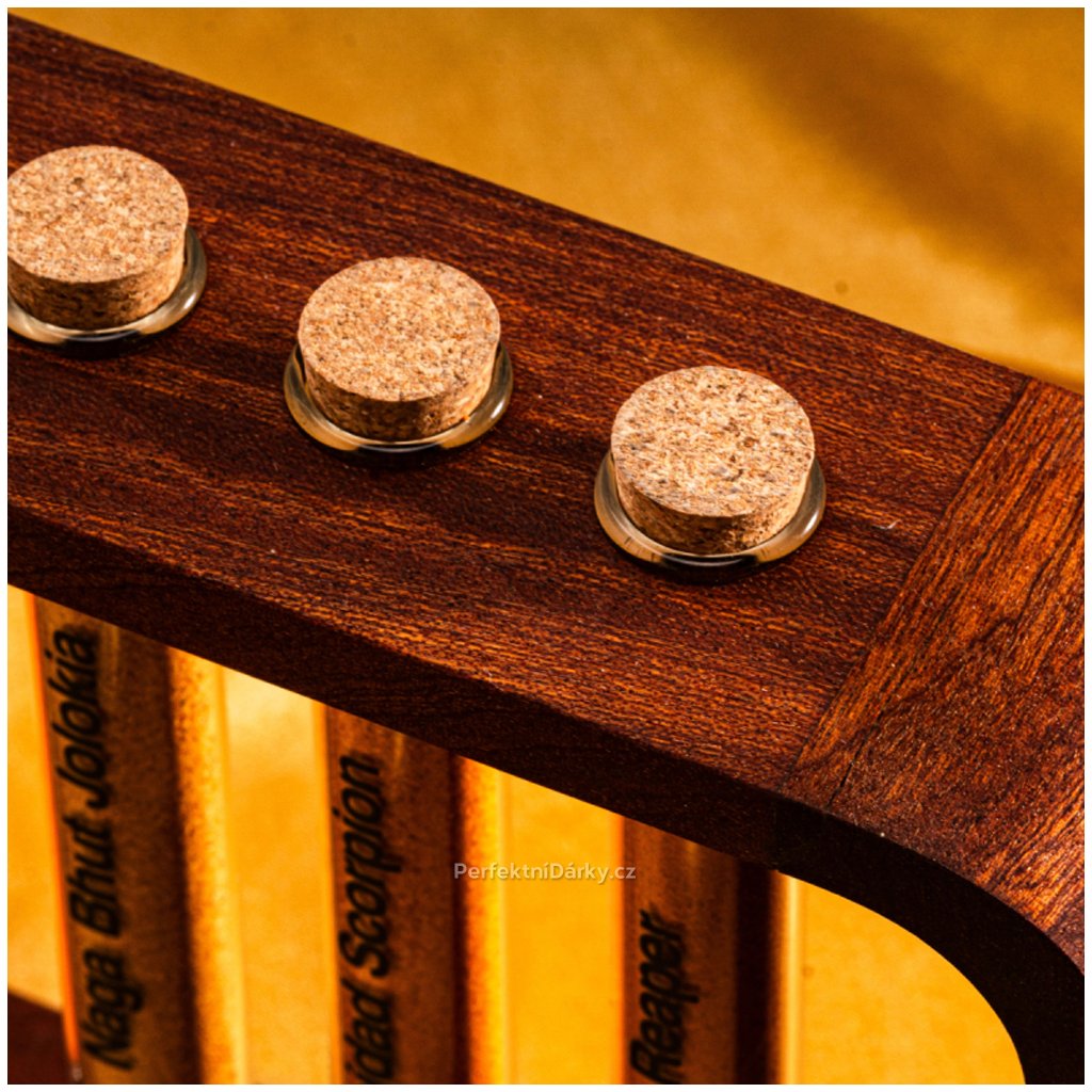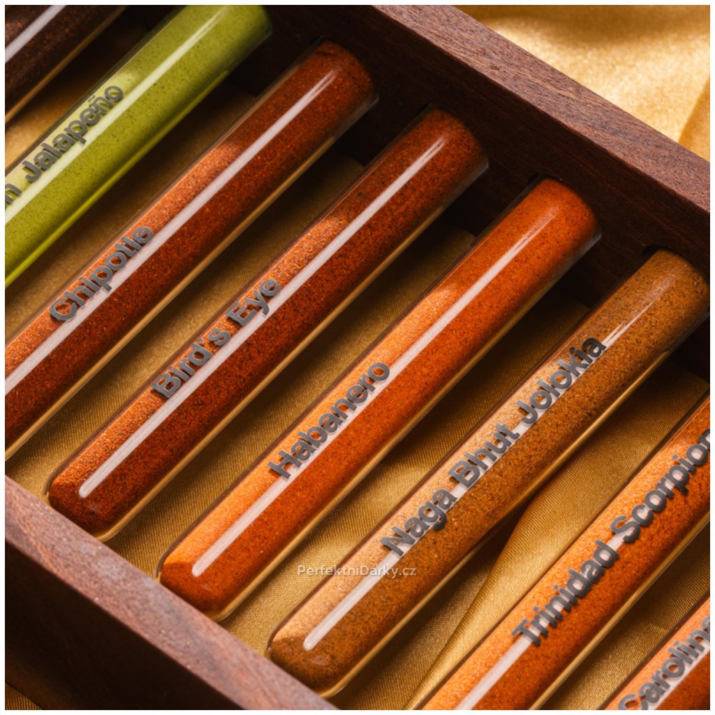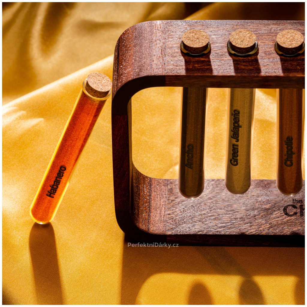 Prémiová chilli kolekce koření v mahagonovém stojanu