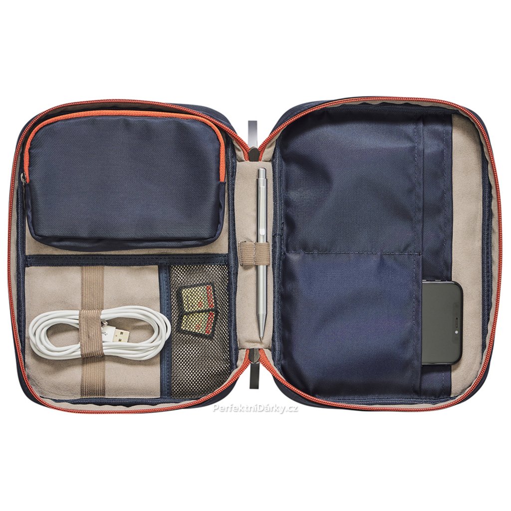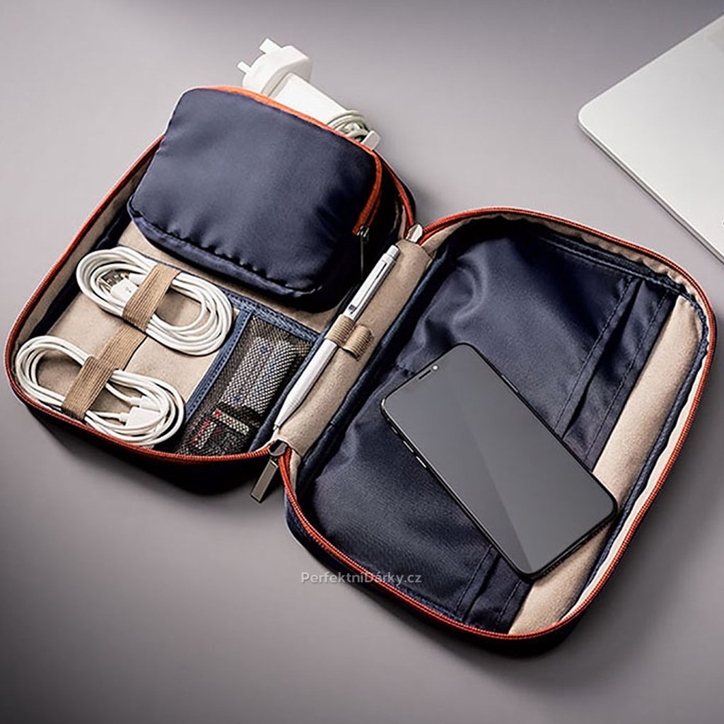- Pouzdro pro uložení techniky a příslušenství. Obsahuje prostor pro kabely, nabíječky, externí pevné disky, pera, flash disky, paměťové karty a další. - Rozměry: 24,5 x 17 ,5 x 5 cm. - Materiál: nylon