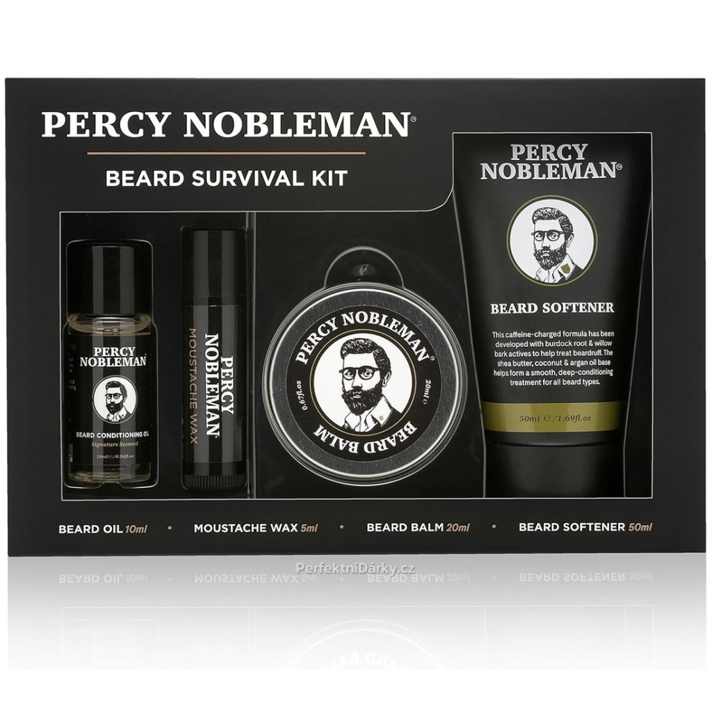Stylová a praktická sada obsahuje vše, co potřebuje moderní gentleman pro dokonalou péči o své vousy. Najdete v ní olejový kondicionér, vosk na knír, balzám na vousy a zjemňovač vousů - vše s elegantní vůní bergamotu, černého pepře, pačuli a vanilky.