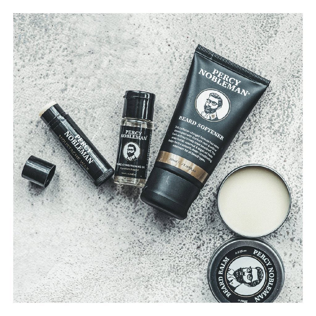 Stylová a praktická sada obsahuje vše, co potřebuje moderní gentleman pro dokonalou péči o své vousy. Najdete v ní olejový kondicionér, vosk na knír, balzám na vousy a zjemňovač vousů - vše s elegantní vůní bergamotu, černého pepře, pačuli a vanilky.