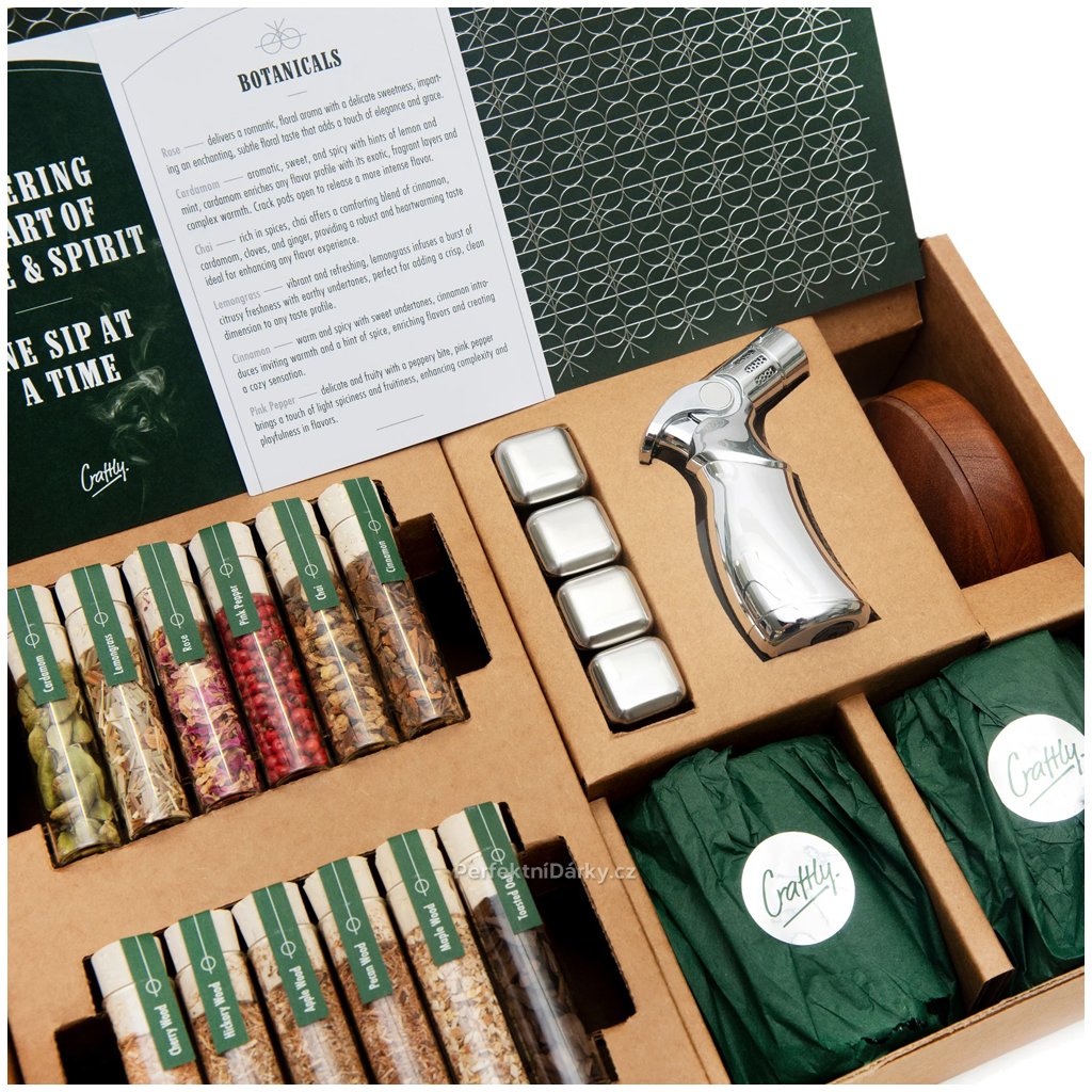 - Kompletní příslušenství: 2 sklenice na whisky, 4 chladící kameny do whisky, 1 hořák, 1 ohniště