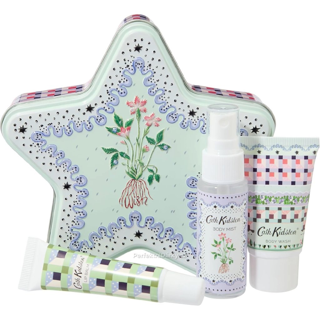 Rozjasněte den sobě nebo svým blízkým s touto voňavou mini sadou od Cath Kidston, ukrytou v elegantní plechové dóze ve tvaru hvězdy. Uvnitř se skrývá trojice produktů pro každodenní péči – tělová mlha Musk Rain s osvěžující vůní šeříku, cedrového dřeva a pudrového mošusu, tělové mýdlo Fig Tree se šťavnatými tóny fíků, kokosu a hřejivého dřeva a balzám na rty s mátovou příchutí pro dokonale hebké a hydratované rty.