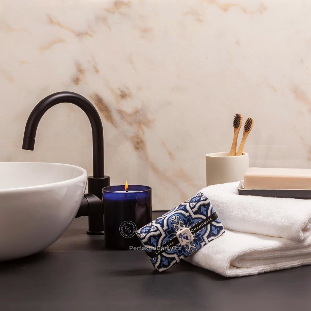 Objevte kouzlo portugalské tradice a luxusní péče s touto elegantní sadou dvou ručně balených tuhých mýdel inspirovaných krásou portugalských dlaždic azulejos. Kombinace Santalového dřeva & Tonka a Levandule & Heřmánku přináší dokonalou rovnováhu mezi hřejivými, dřevitými tóny a uklidňujícími květinovými vůněmi.