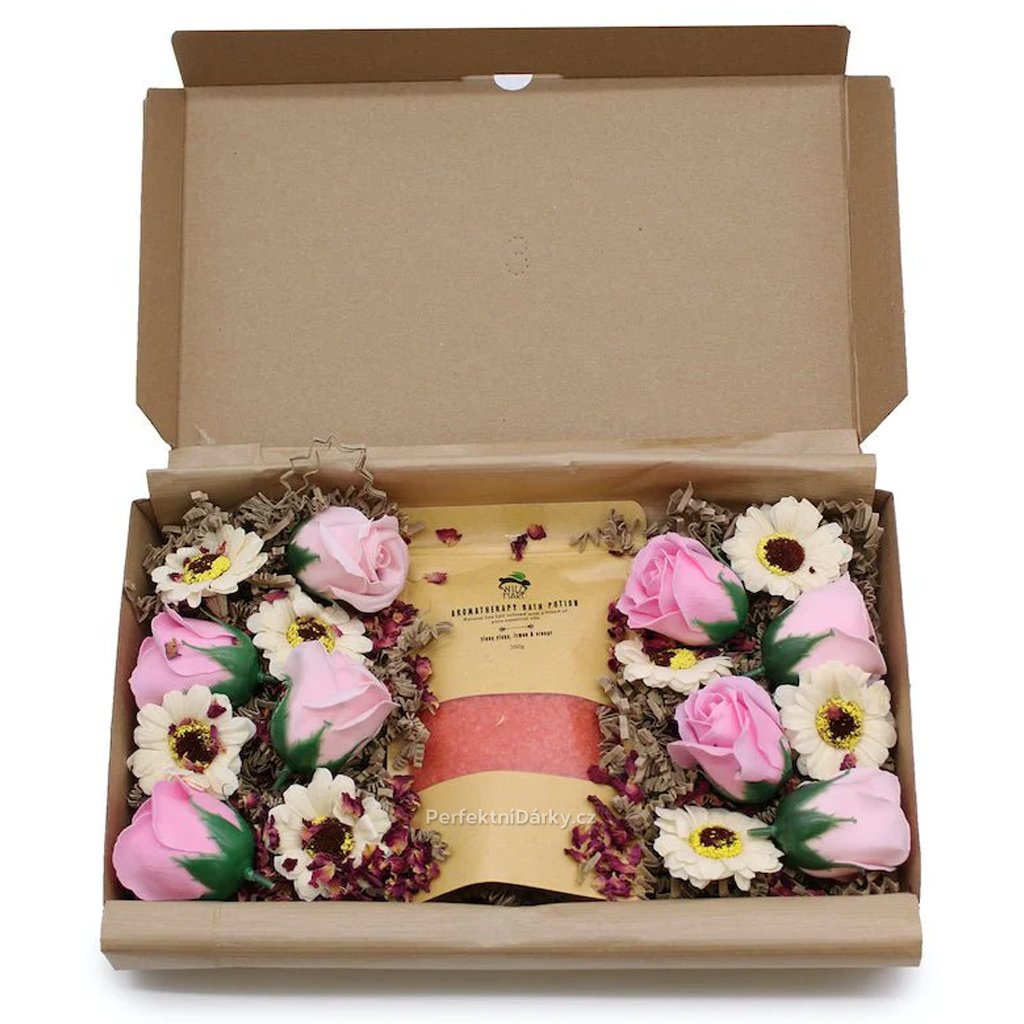 Dárkový set koupelové soli a mýdlových květů. Vyrobeno pouze z přírodních ingrediencí a esenciálních olejů.