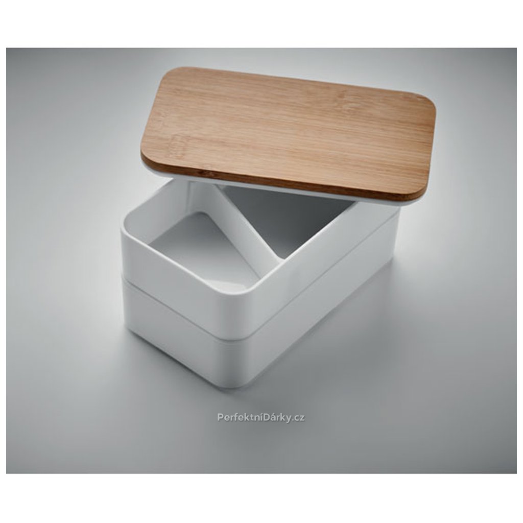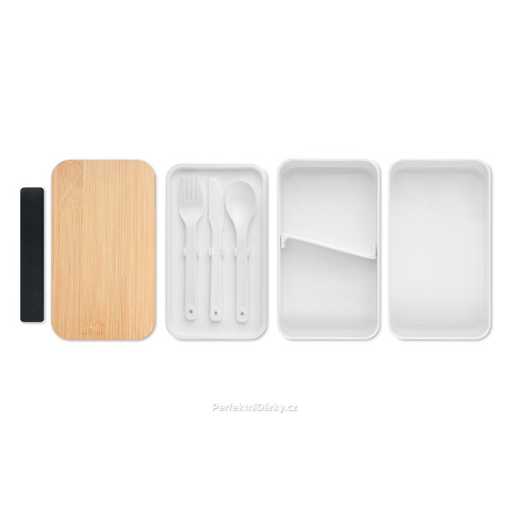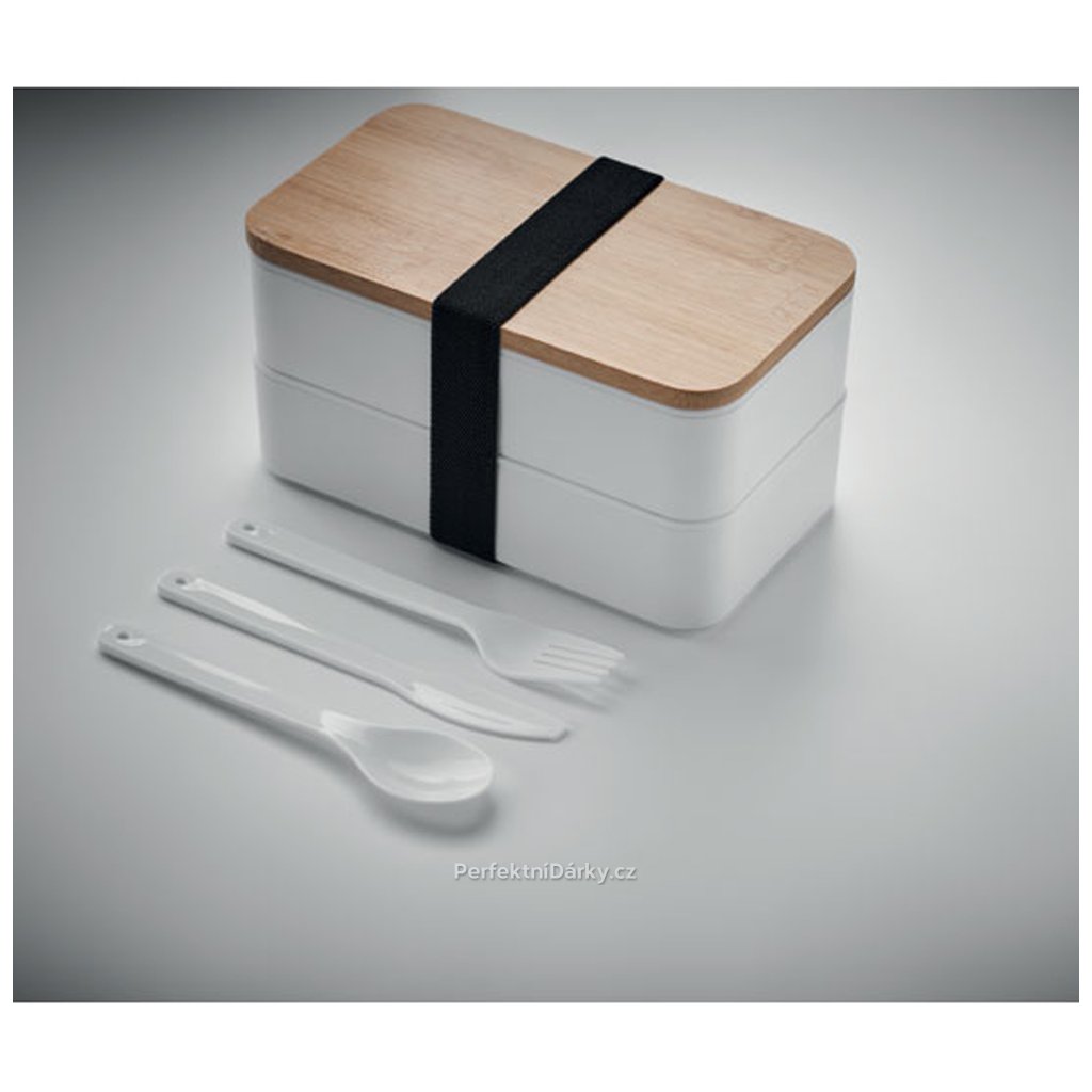 Stylový a praktický dvoupatrový obědový box s bambusovým víkem. Objem 800 ml (2x 400 ml). Ideální na zdravý oběd do práce či na piknik. Včetně příborů a rozdělovače.