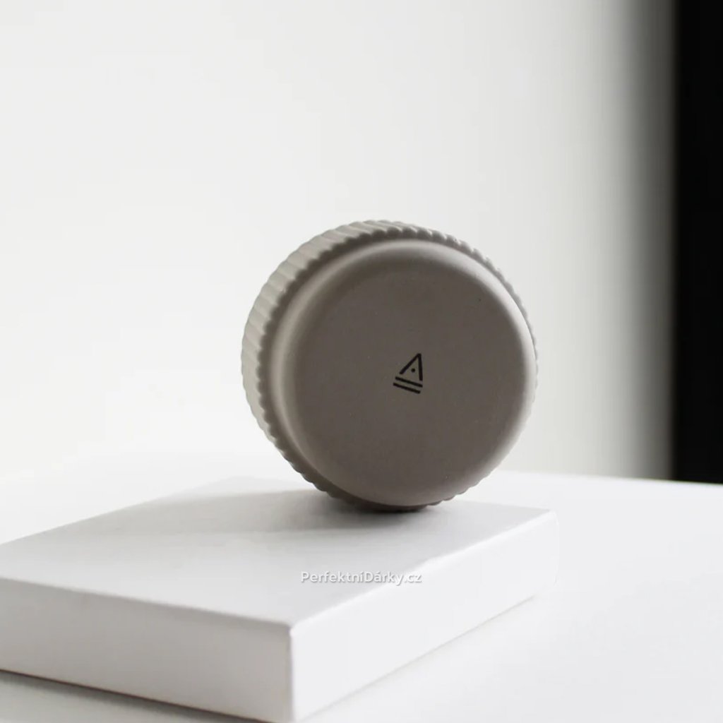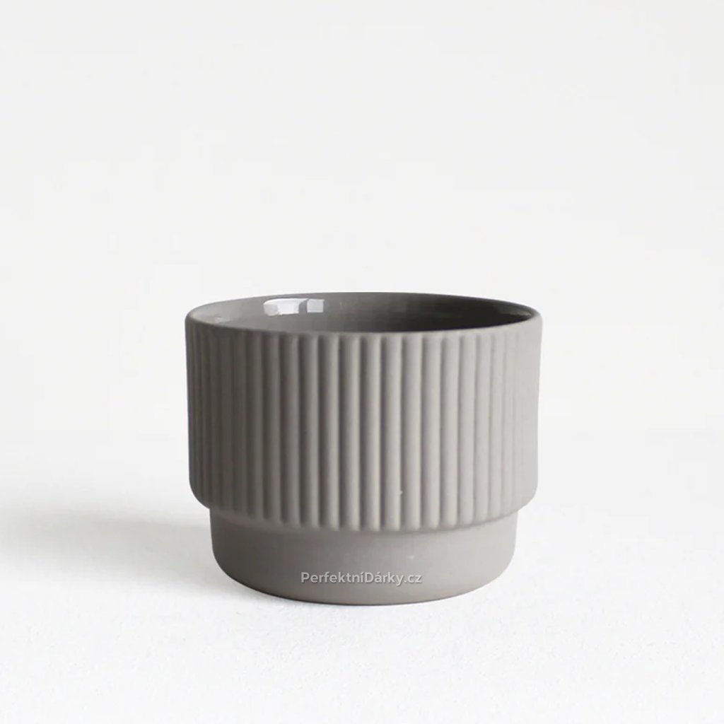 Designový šálek z kameniny z druhé série kolekce Column, která navazuje na původní minimalistickou řadu, ale přináší novou rýhovanou strukturu na vnější straně. Díky přidaným pigmentům přímo do tekutého jílu má šálek jednotný světle šedý odstín – jak uvnitř, tak zvenku.