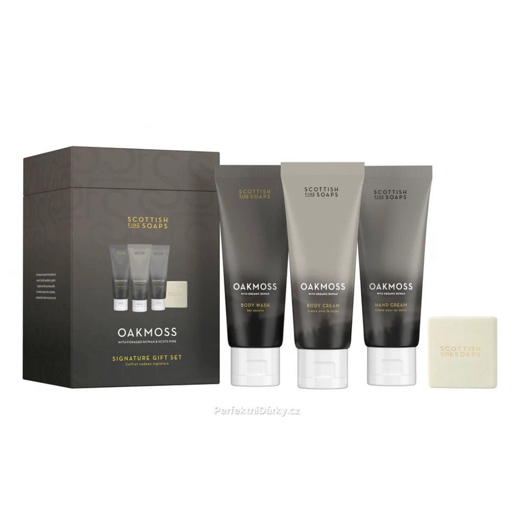 Elegantní dárková sada Oakmoss přináší dotek skotské přírody v luxusním provedení. Je ideálním dárkem pro každého, kdo miluje svěží lesní vůně a přirozenou péči o pokožku.