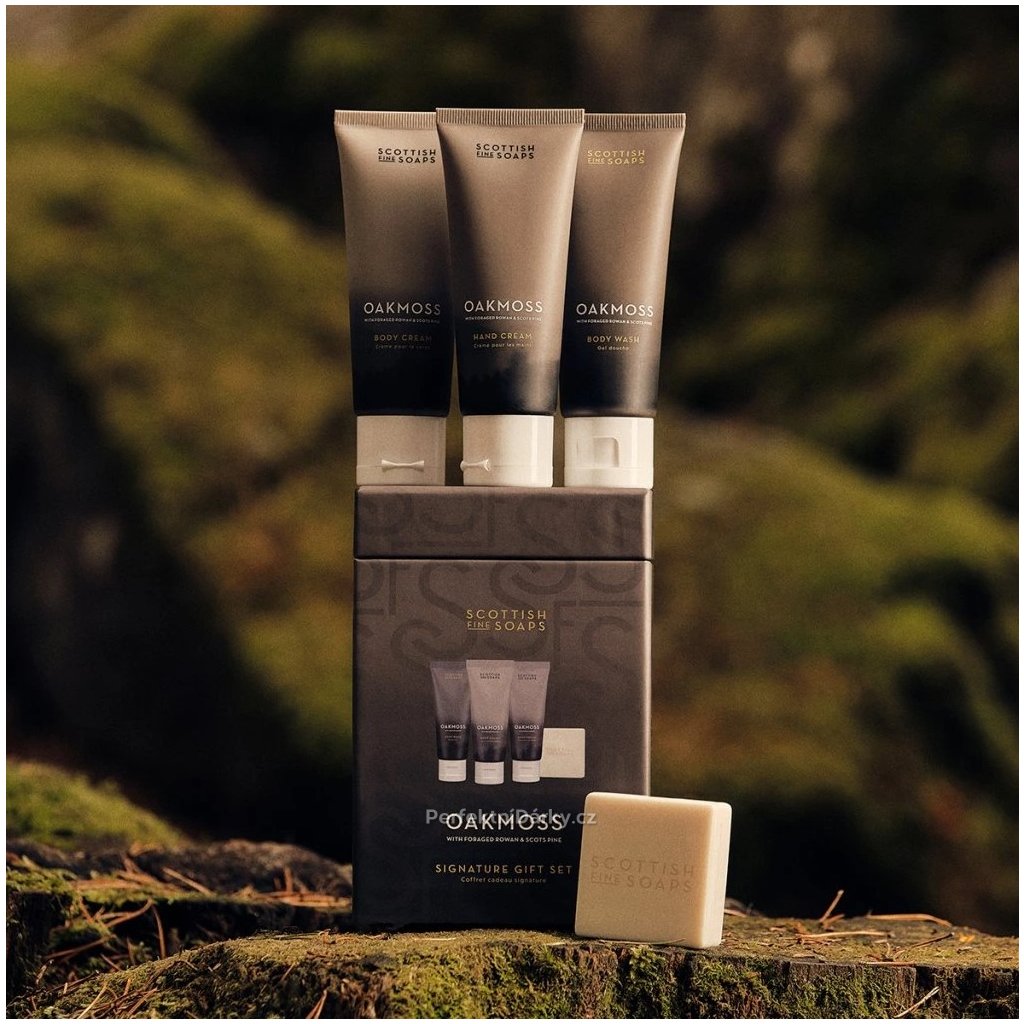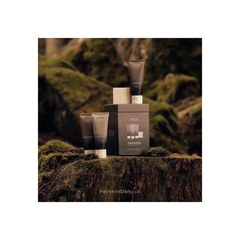 Elegantní dárková sada Oakmoss přináší dotek skotské přírody v luxusním provedení. Je ideálním dárkem pro každého, kdo miluje svěží lesní vůně a přirozenou péči o pokožku.