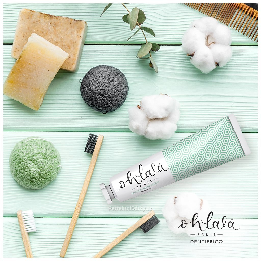 Dopřejte sobě nebo svým blízkým zářivý úsměv s luxusní dárkovou sadou Ohlalá, která spojuje francouzskou kvalitu, přírodní složení a stylový design. Sada obsahuje bambusový kartáček a dvě zubní pasty ve dvou osvěžujících příchutích – pomeranč & máta a máta peprná.