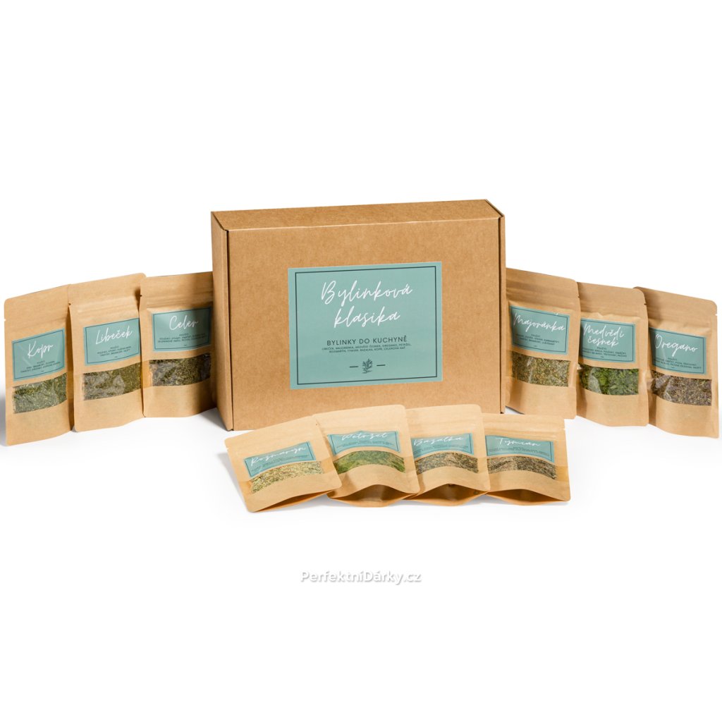 Vůně a chuť pravé kuchyně – vždy po ruce! Tato dárková kolekce sušených bylinek obsahuje 10 prémiových druhů, které využijete při každodenním vaření. Každá bylina je pečlivě sušená tak, aby si zachovala maximum aroma i chuti – ideální pro všechny, kdo milují poctivou domácí kuchyni. Vše je zabaleno v elegantních sáčcích s popisem a tipem na využití, takže se skvěle hodí jako vkusný dárek pro kuchaře a milovníky vaření či ty, kteří právě zařizují nový domov.