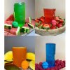 Složení příchuť Meloun: cukr, kyselina citronová, jedlá soda, přírodní melounové aroma, sladidlo (sukralóza), perleťové pigmenty (na bázi slídy), barvivo: E102, E133 *