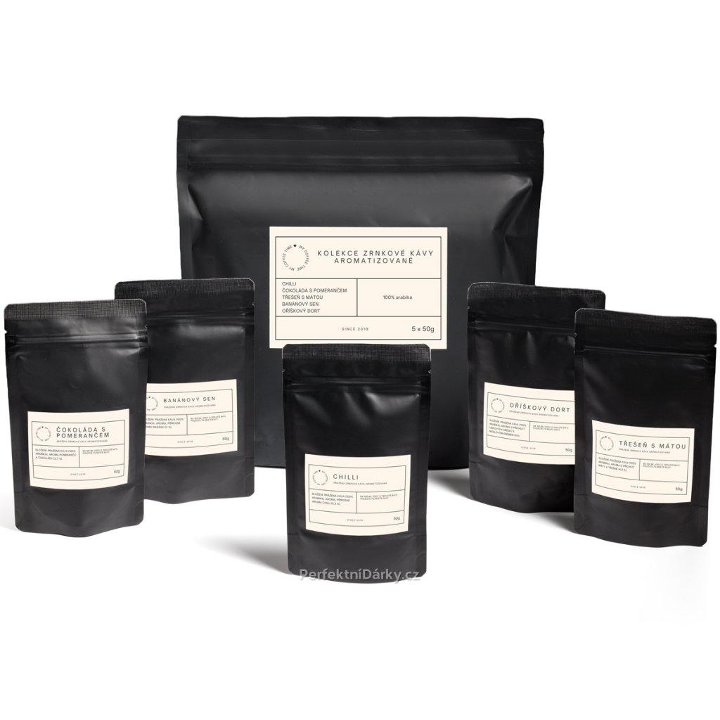 - 5× 50 g aromatizované zrnkové kávy
